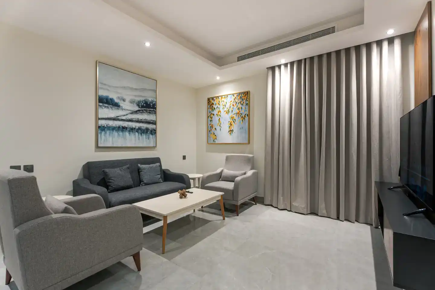 Apartment 114 is a beautifully designed, fully furnished serviced apartment that blends modern aesthetics with practical living. Ideal for business travelers, expatriates, and families, this unit offers a comfortable and luxurious stay tailored to both short-term visitors and long-term residents.