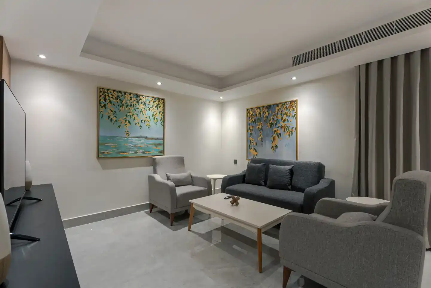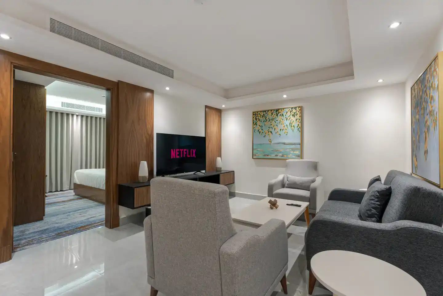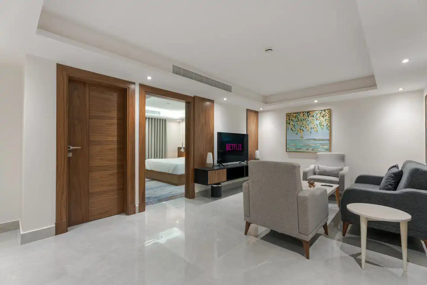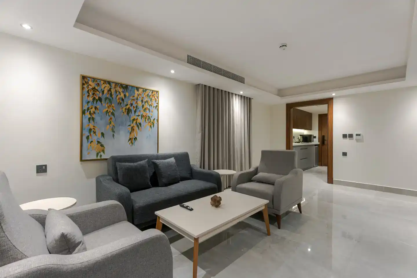 - Open-plan Living & Sitting Area decorated with contemporary furniture for relaxation and entertainment.